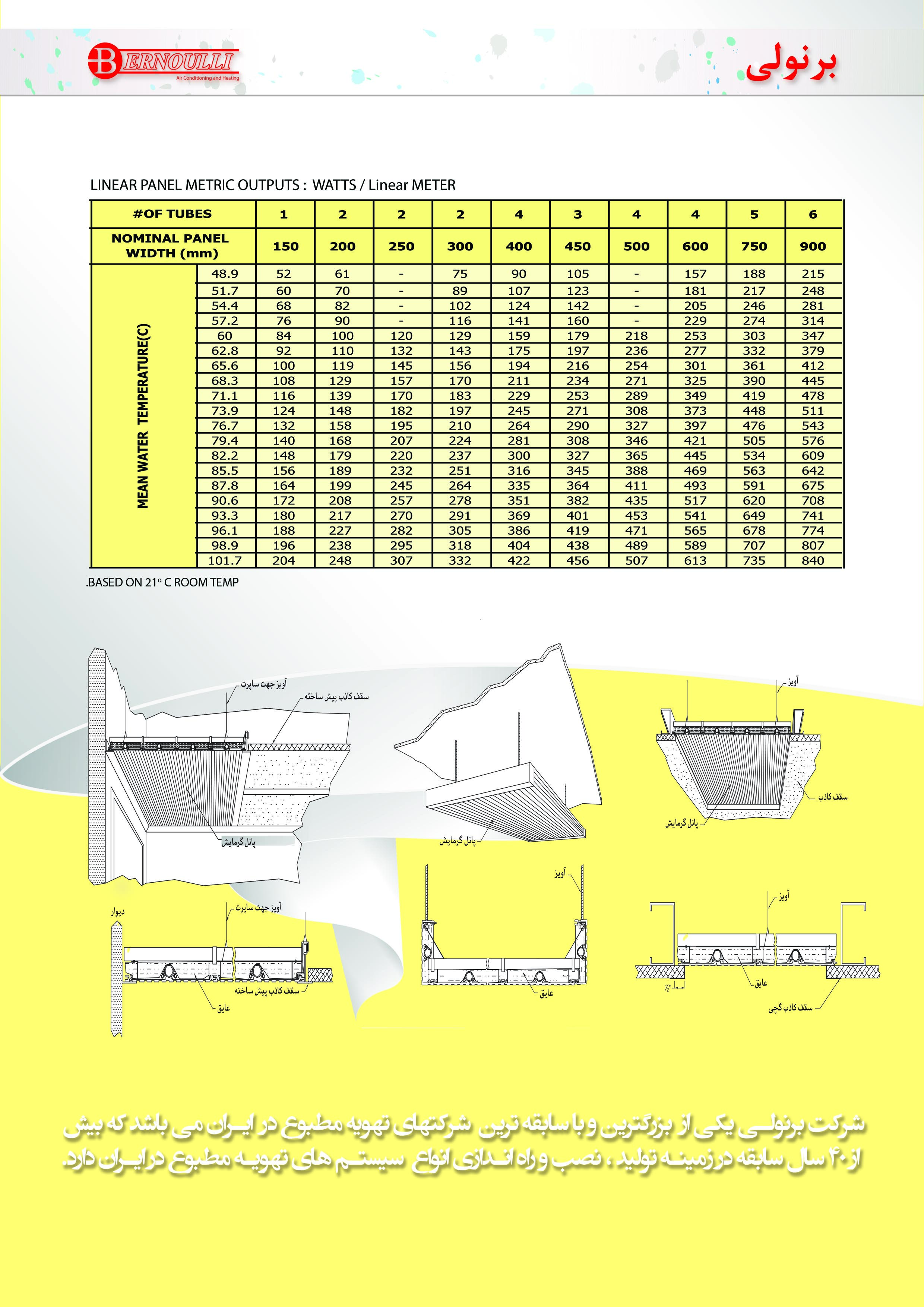 عرض پانلها از 150 میلیمتر تا 900 میلیمتر و در طول های متغیر عرضه می گردد که هم به صورت سقفی و هم به صورت دیواری قابل نصب است.